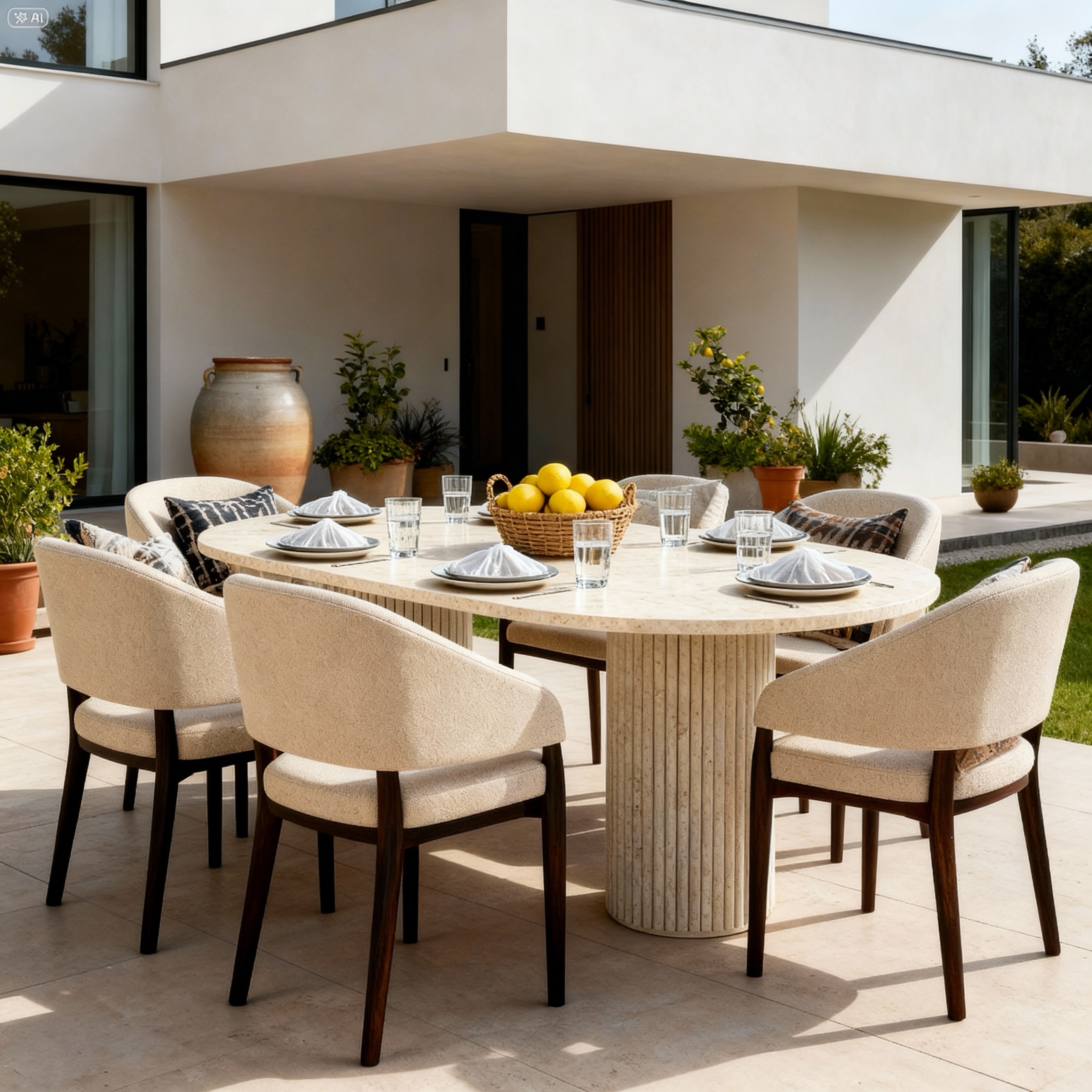 Toutes nos tables sont fabriquées à la main au Maroc à partir de pierre naturelle de travertin. Chaque pièce est unique témoignant du savoir faire artisanal marocain.